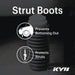 KYB Strut Boot Kits keep your struts protected from dirt, dust, sand, salt and other road debris. These harmful elements cause abrasive wear to the polished shaft, upper seal and bushing. KYB Strut Boot Kits prevent these contaminants from entering the strut by covering the entire strut shaft in a highly durable plastic bellows. This can easily extend the life of the strut. The KYB Strut Boot Kit includes a poly foam travel-limiting bumper. Its designed to protect the strut from bottoming out and protects other components from extreme movement damage.